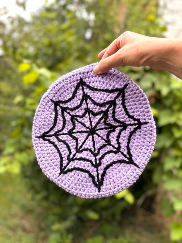 Béret toile d'araignée lilas et noir